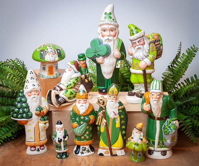 Celebrate the warmth and symbolism of the Emerald Isle with our St. Patrick’s Day Irish Santa Series, a collection that beautifully blends the joy of Christmas with the rich heritage of Ireland. Inspired by the enduring story of St. Patrick and the traditions of Irish faith and folklore, each Santa is thoughtfully adorned with vibrant shades of green, intricate Celtic motifs, and meaningful symbols such as the Claddagh and the bishop’s staff. These pieces evoke themes of love, loyalty, generosity, and spiritual guidance, while maintaining the timeless charm collectors expect from our Santas. Perfect for springtime displays or as a meaningful gift, the Irish Santa Series brings a touch of Irish warmth and whimsy into the home, creating a distinctive tradition that bridges seasons and celebrates both history and heartfelt giving.