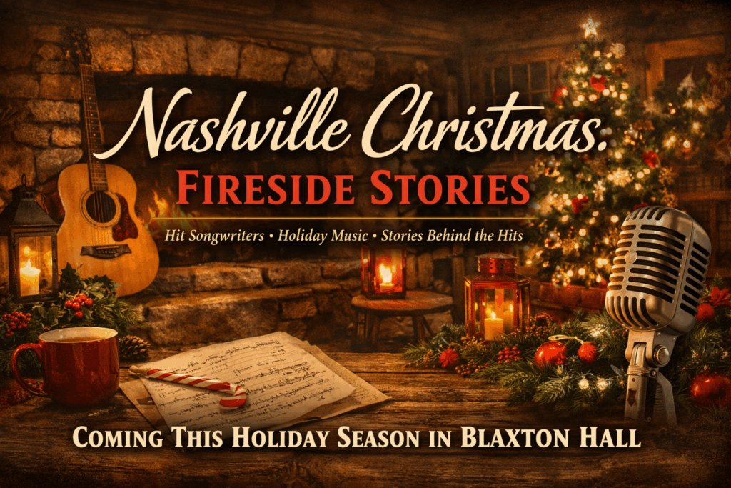 Experience a rare evening of music and storytelling during An Acoustic Christmas in Blaxton Hall. This intimate concert will feature renowned songwriters and performers—artists behind some of the nation’s top Billboard hits—sharing the personal stories and inspirations behind their songs. For the first time outside of Nashville, they’ll debut original Christmas music in a warm, acoustic setting surrounded by the historic charm and holiday décor of Vaillancourt Folk Art. A lighthearted, soulful evening of artistry and tradition awaits.
