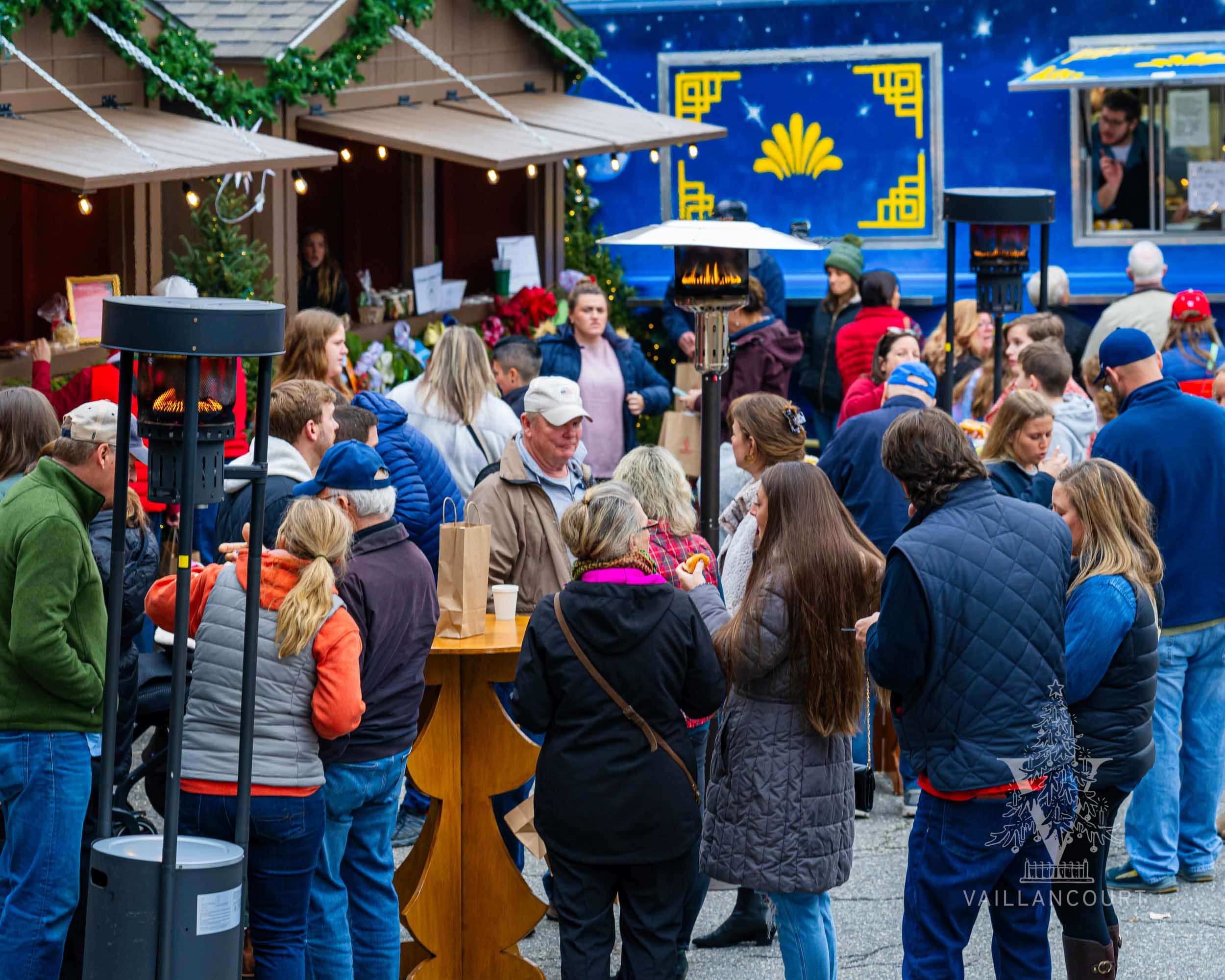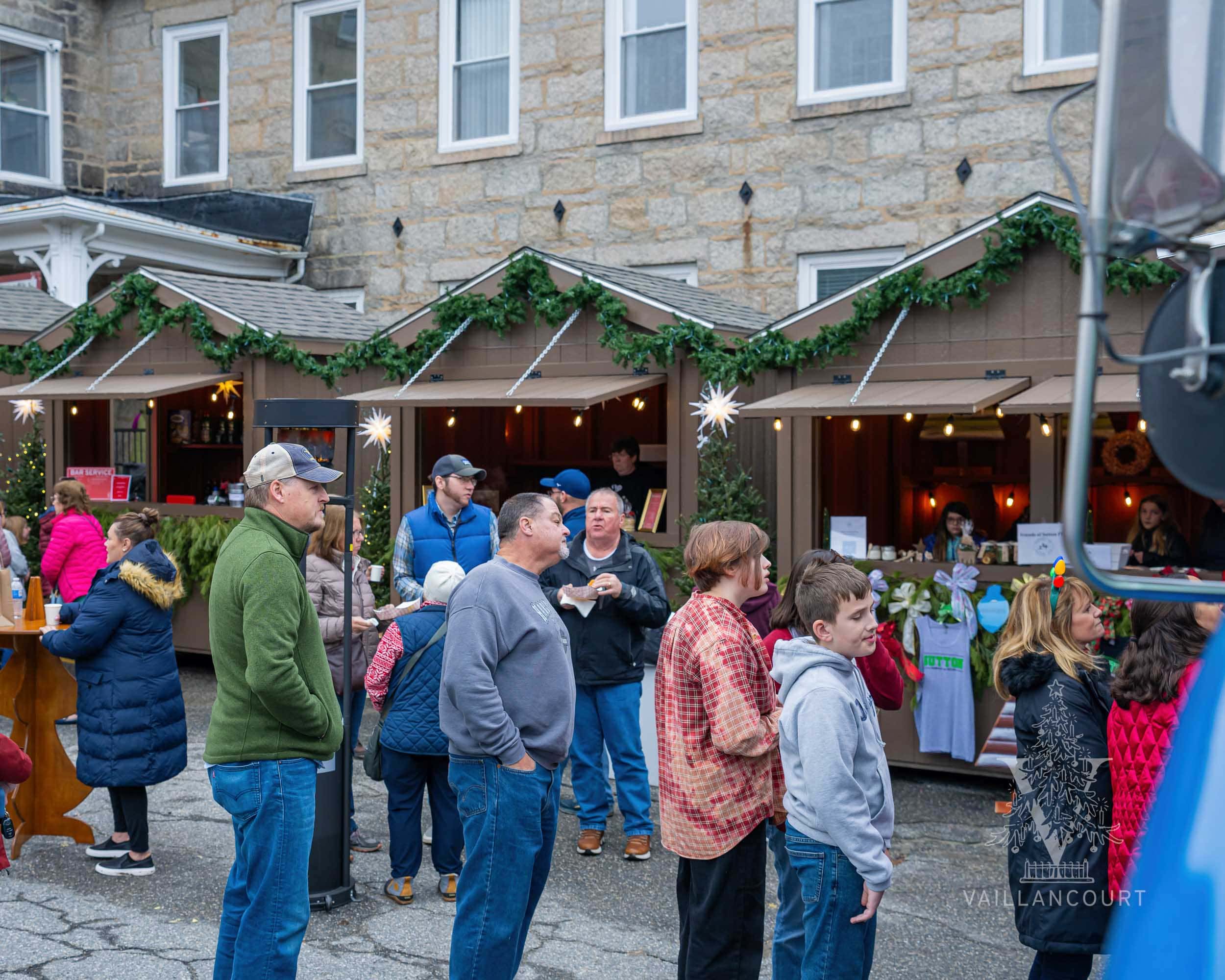 The Sutton Chain of Lights is one of the most anticipated days of the year for the town, as we welcome visitors from across the region to experience the magic of Christmas within our Sutton studios. Guests are invited to explore our festive decorations, shop our hand-painted chalkware and holiday collections, and enjoy the Yuletide Wine Garden, which features a Christmas-themed cash bar, authentic German baked goods from Frauleins Bakery, and the George’s Coney Island’s hot dog truck. To add to the festive atmosphere, Sam James—recognized from The Voice and The Kelly Clarkson Show and admired worldwide for his soulful performances—will perform live from 11:00 am to 1:30 pm. While the larger town-wide event offers free trolleys and stops at local shops and historic venues throughout Sutton, many visitors look forward to Vaillancourt’s festive destination, and are drawn to the unique combination of fine art, Christmas tradition, and community spirit that has helped defined this celebration for decades.