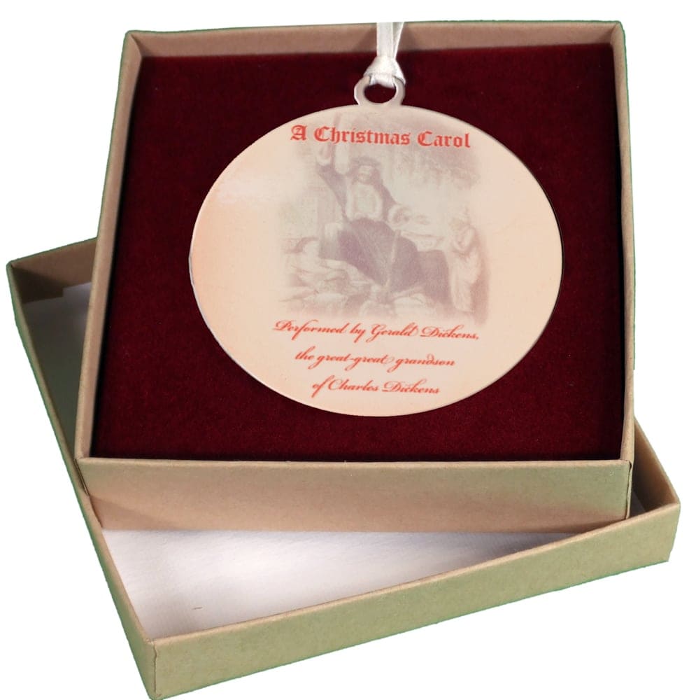 This ornament is perfect for being signed by Gerald Dickens during his second annual performance of A Christmas Carol at the Vaillancourt Studios.