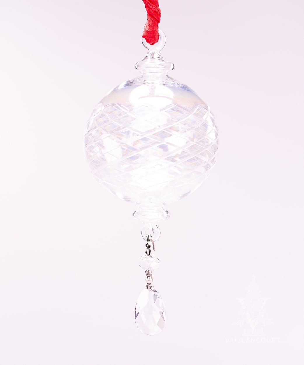 Egyptian Museum produces some of the most beautiful crystal-styled glass ornaments. Mouth blown in Egypt, the trained artists—usually using techniques passed down from generation to generation—mouth blow smooth Pyrex glass tubes over a fire. At this time the glass is etched, cut, and swirled before being painted with a luster or organic paint. The final steps are when the painter applies 24 kt gold to accent the piece before being baked in an oven with temperatures upward of 1,100 degrees Fahrenheit.
