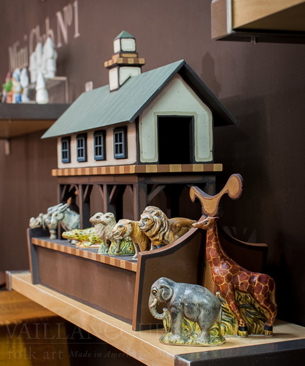 The new Extended Noah’s Ark club is a 17-month club that includes pairs of: Giraffes, Monkeys, Tigers, Elephants, Pigs, Dogs, Hippos, Bears, Lions, Lambs, Crocodiles with the 12th month being an Ark hand-carved by Maurice (Mo) & Kelly Dallas, exclusively for Vaillancourt Folk Art. After the ark, monthly pairs include: Donkeys, Rhinoceros, Horses, Leopards, and Camels. This limited edition club is offered monthly and cannot be modified.?Matched Numbered Sets Clubs Assigned: 16, 17, 18, 19, 20, 21, 22, 23, 24, 25, 26, 27, 28, 30, 31, 32, 33, 29