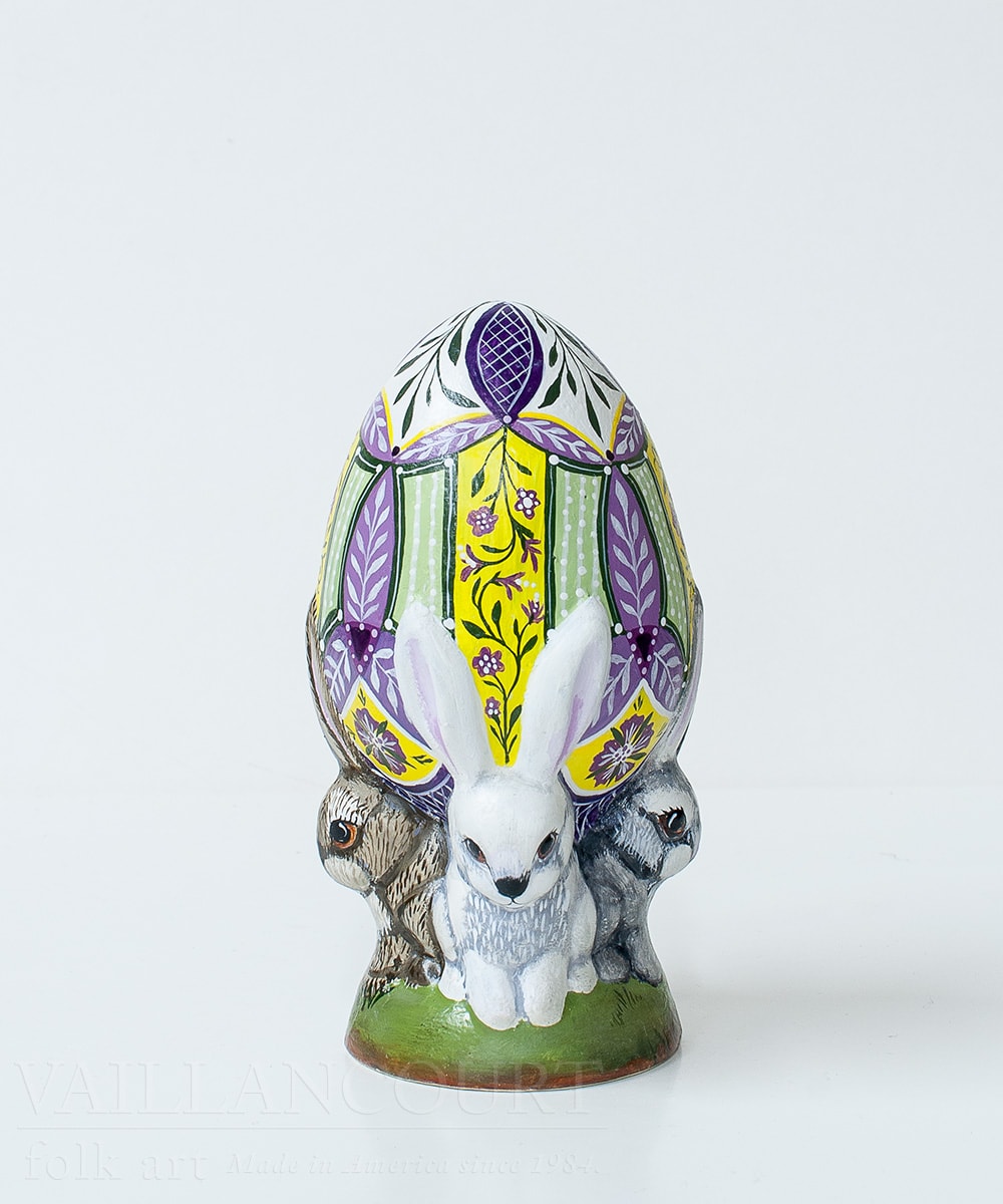 Small Yellow and Violet Egg with Rabbits