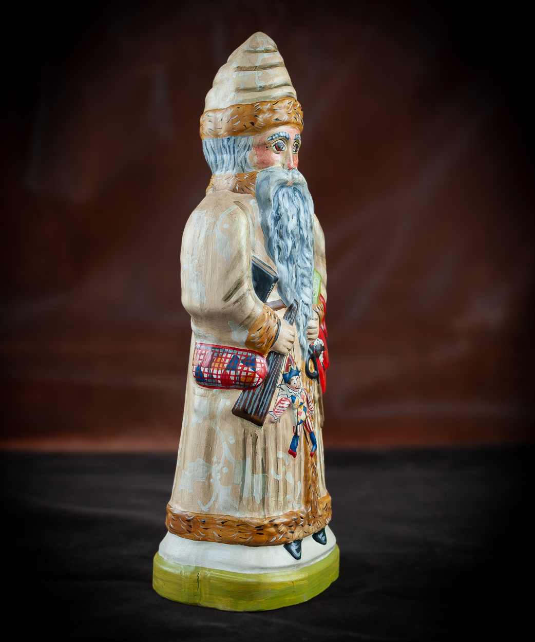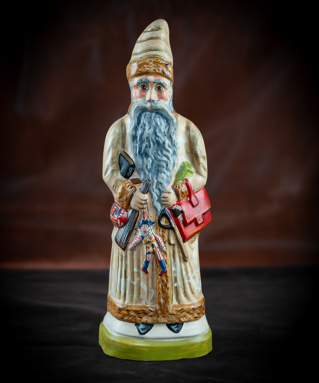 Father Christmas in a Tan Brocade Coat with Good and Bad Books
