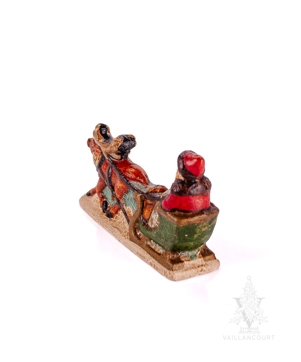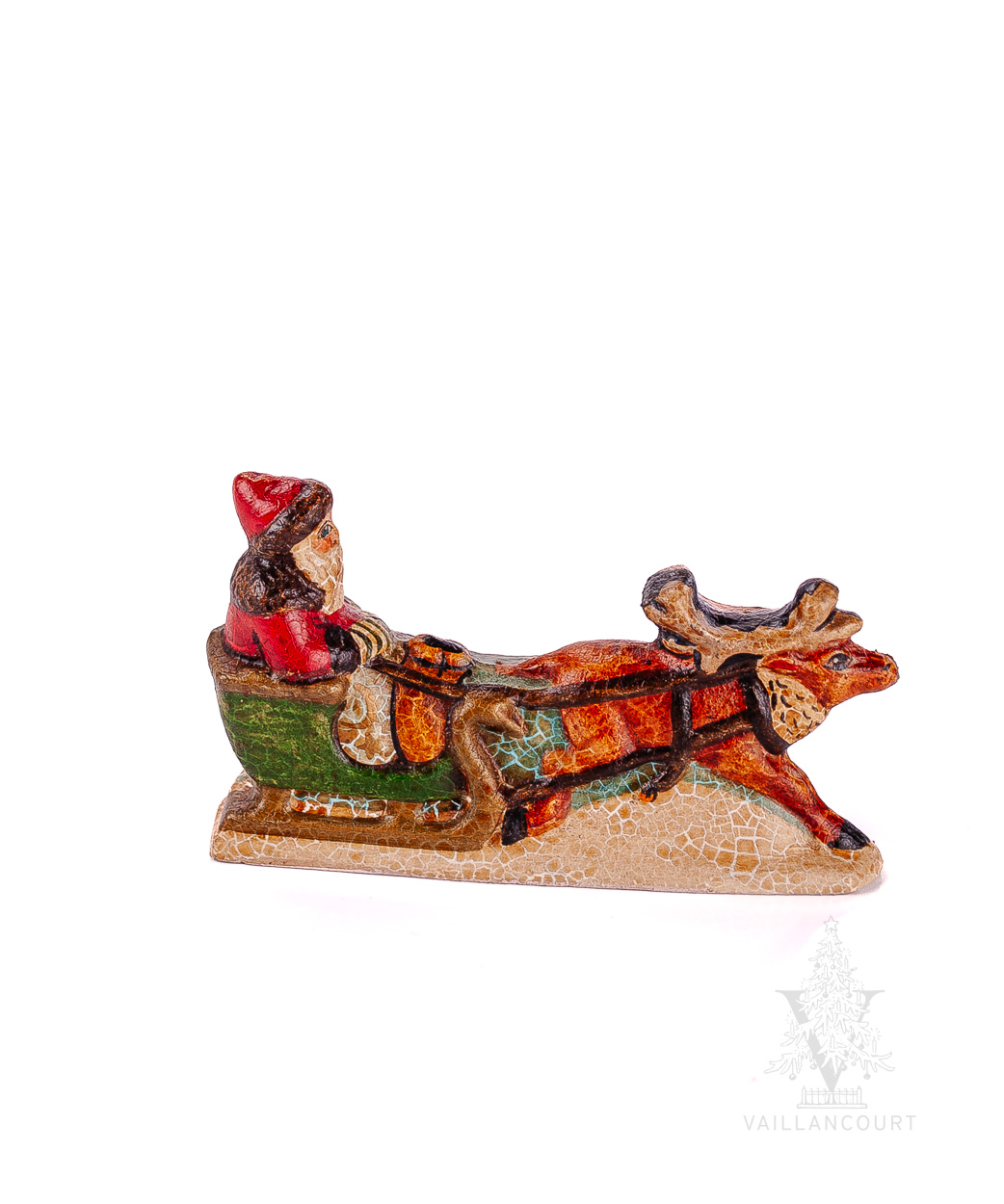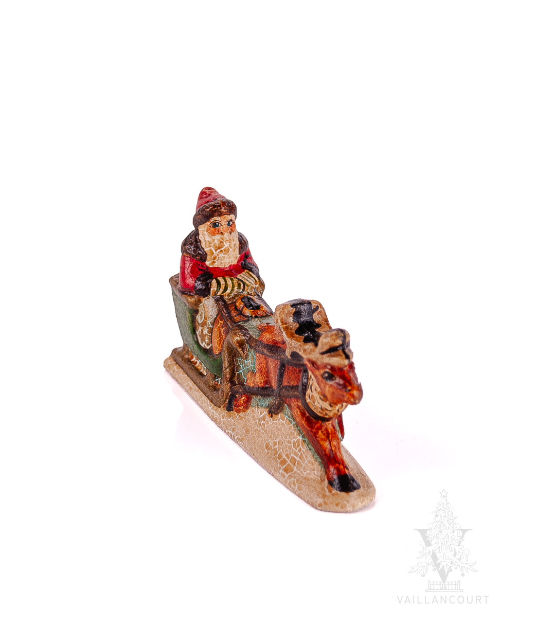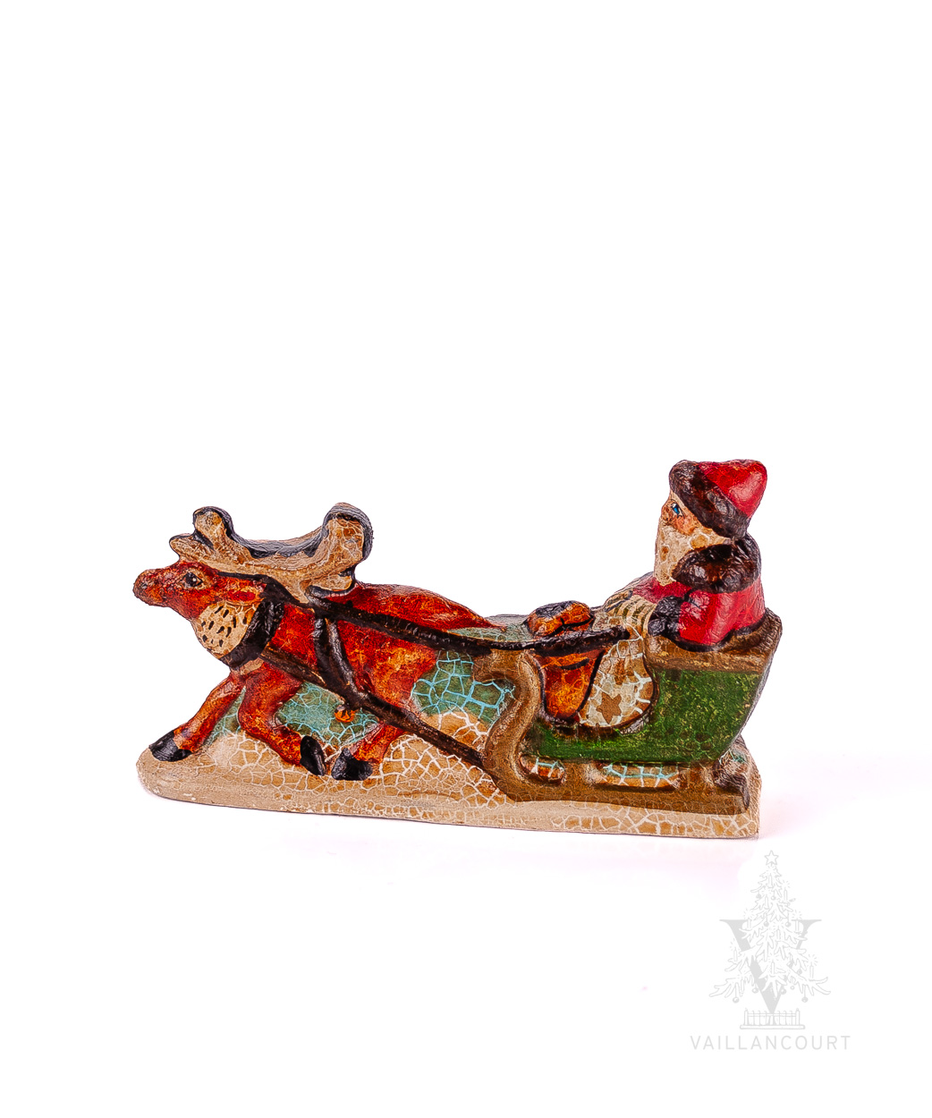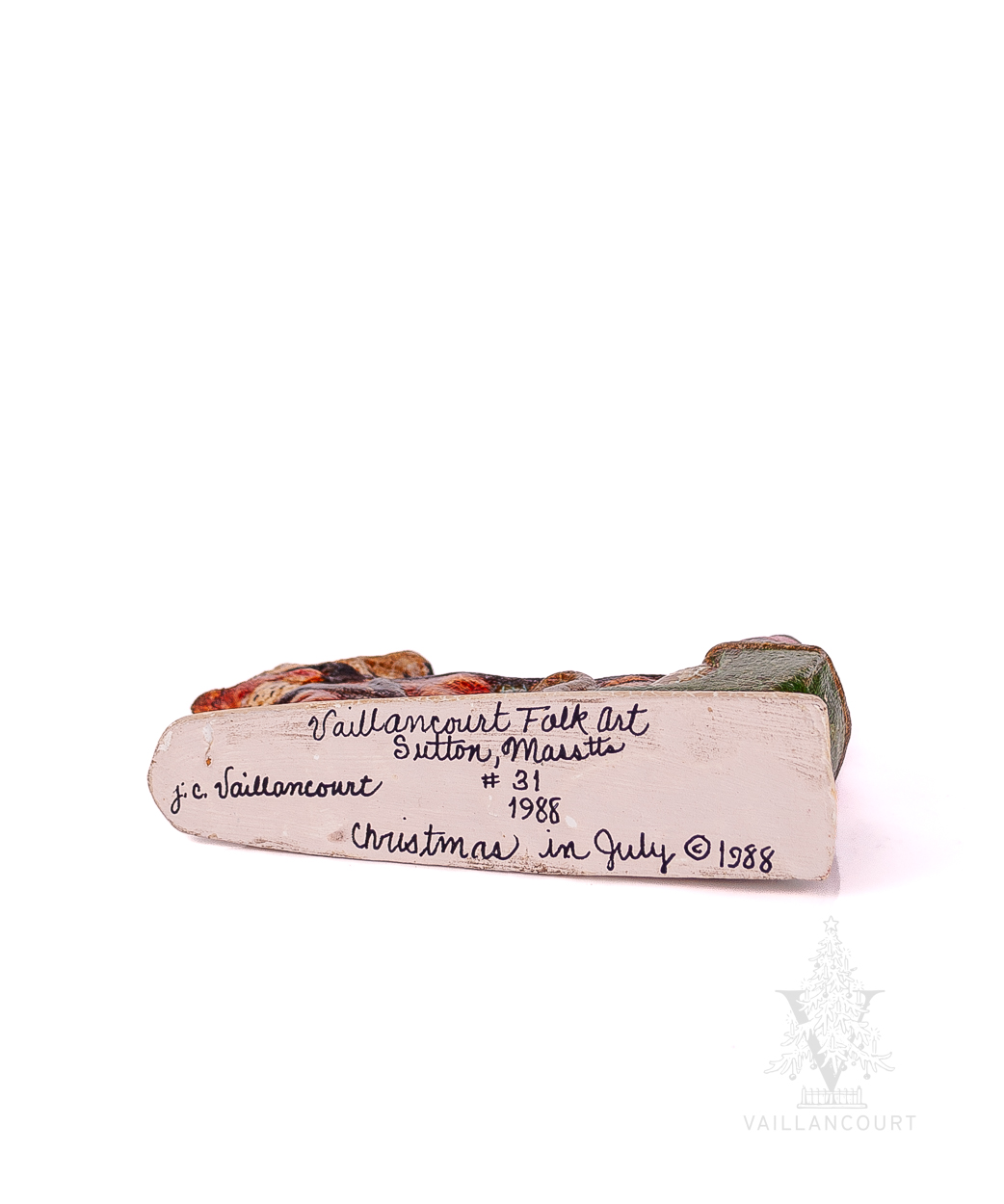 Vaillancourt Folk Art opened their store on Armsby Road in the fall of 1987 and decided in 1988 to start their annual event, Christmas in July. This was a store wide celebration that was a significant event for years to come. The very first year Judi did a special piece for the opening: a small Santa in a sleigh. The piece was extremely detailed and was one of the few chalkware pieces that was never given a number. Instead of a number, it was simply called Christmas in July 1988.