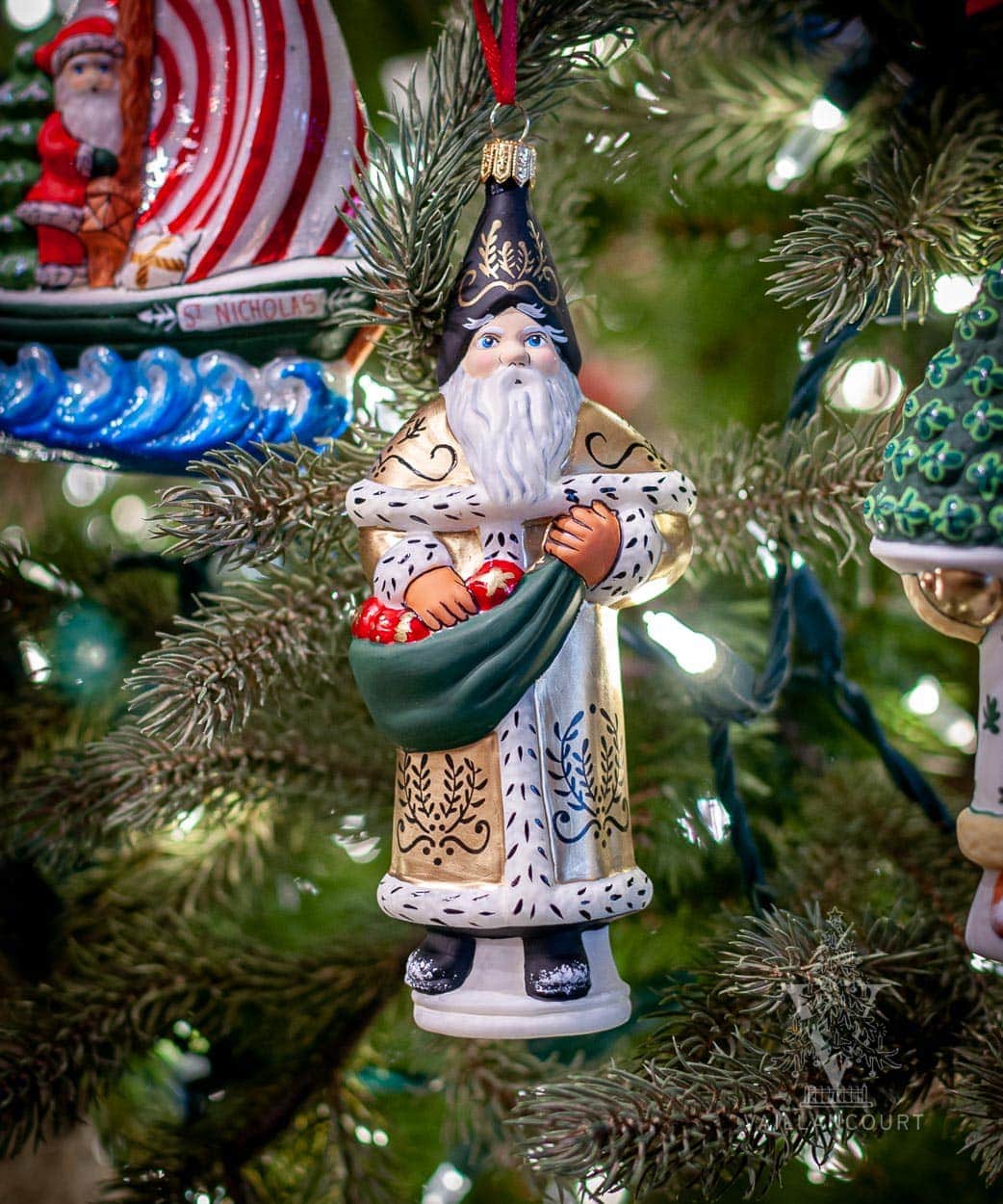 Golden Colonial Santa with Ornaments