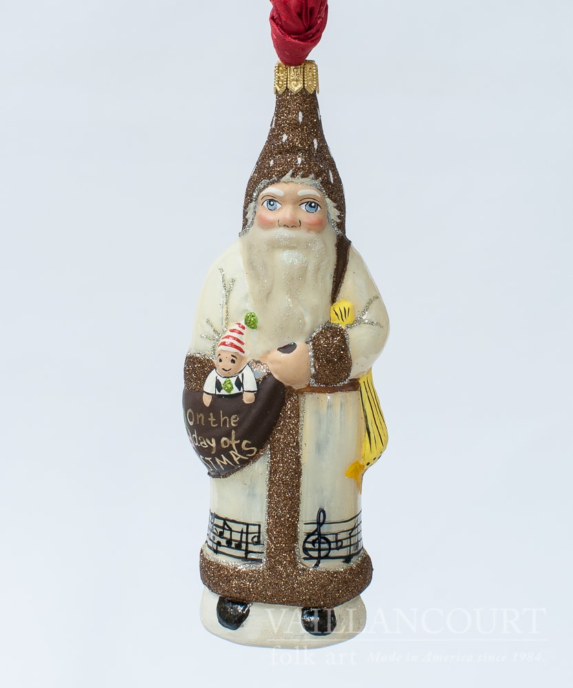 To commemorate the popular Christmas Carol, The Twelve Days of Christmas, Vaillancourt Folk Art is pleased to have created a new version of the corresponding ornaments in an updated version that includes a touch of glimmer.